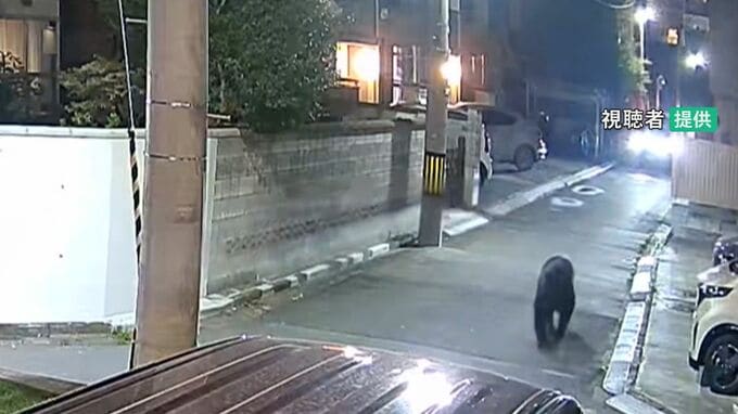 宮城県仙台市の住宅街で近づく車に驚く様子もなく、悠々と道路を歩くのは1頭の黒いクマです。