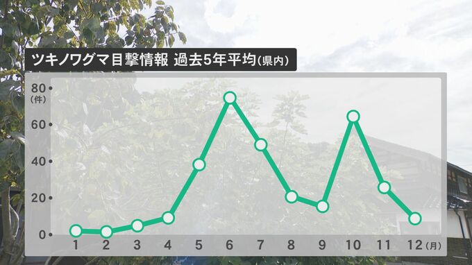 専門家も、この時期はクマに特に注意が必要だと指摘します。こちらは、過去5年の県内でのクマ目撃数を月別にまとめたグラフ。