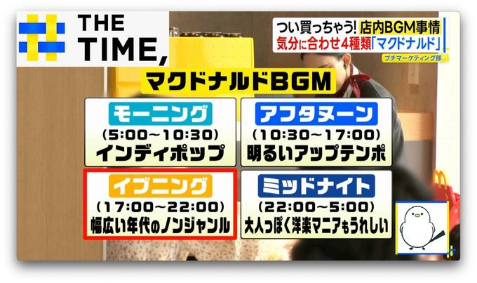買い物中や食事中に店内で流れているBGM。実はそれぞれの曲には“購買意欲の刺激”や“滞在時間の引き延ばし”など、各企業の様々な狙いが込められています。