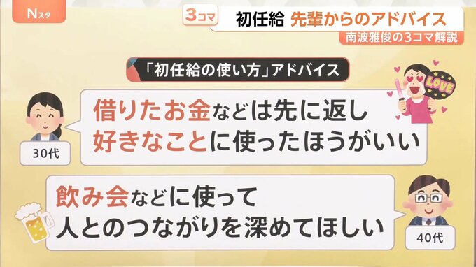 初任給の使い方について、社会人の先輩からのアドバイスを聞きました。