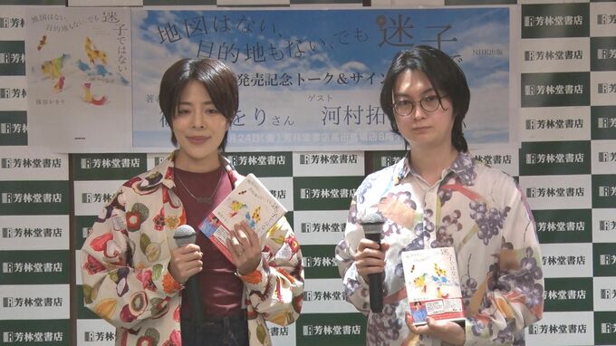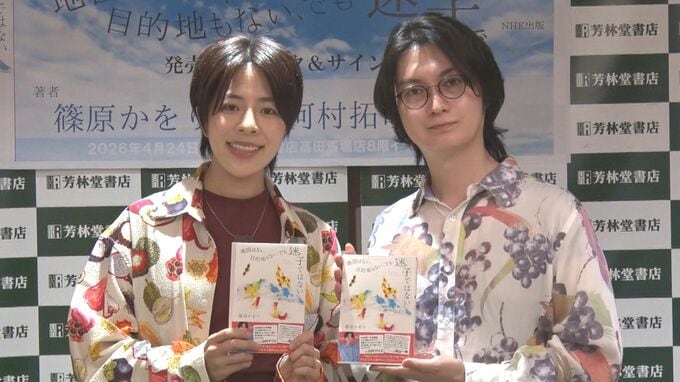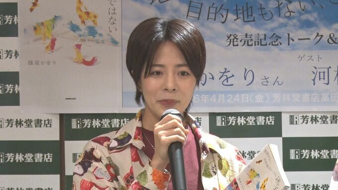昆虫研究家としても活躍する、タレントで作家の篠原かをりさんと、YouTuberで「QuizKnock」のクイズプレイヤーの河村拓哉さんが、東京・高田馬場にある芳林堂書店で開催された「篠原かをりエッセイ集『地図はない、目的地もない、でも迷子ではない』新刊発売記念イベント」に登壇。夫婦として初めてのマスコミ取材に対応しました。