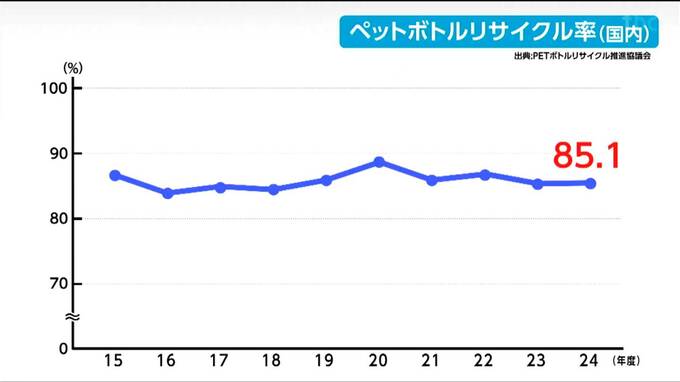 PETボトルリサイクル推進協議会によりますと2024年度、日本の使用済みペットボトルのリサイクル率は85.1%で高い水準で推移しています。