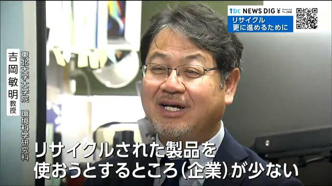 吉岡教授は、異物が入ったものをリサイクルするには高額な設備の導入や特殊な技術の研究が必要で、企業が二の足を踏んでいると指摘します。メーカーがリサイクル素材を用いる割合を高めることで、リサイクル素材を作る事業者がコストをかけてでも設備を導入するきっかけになると話しています。こうした好循環に加え、更なるリサイクルにつながる事例もあります。