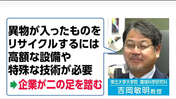 「(日本のリサイクルは)いまは完璧に遅れています。リサイクルされた製品を使おうとするところ(企業)が少ないです。(消費者が)非常に高品位なものを求めてしまう。ちょっと異物が入っただけでこれ使えません、というふうになる」
