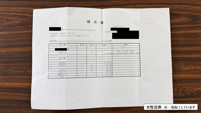 さらに、リフォーム会社の請求書まで送られてきた。