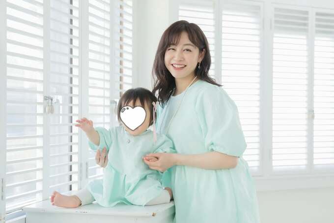 新井さんは、1歳になった娘とお揃いの服を着た写真を添えて「娘が一歳になったので記念撮影しました」「ブラウスは、娘への誕生日プレゼントとしてお揃いで作っちゃったー…!」「ネックレス風にビーズを付けたり、ヘアリボンを作ったりして、楽しかった」と投稿。