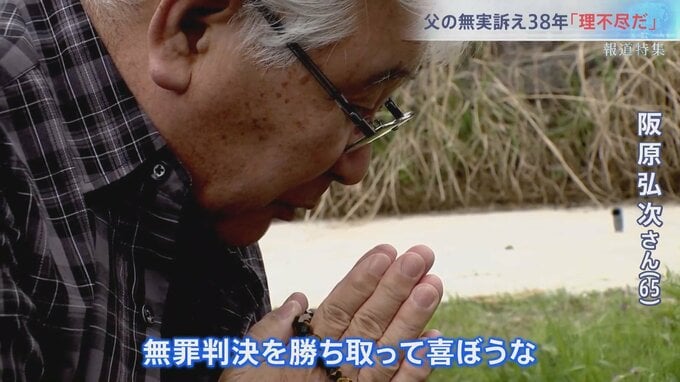 滋賀県に住む阪原弘次さん(65)は、38年間、父・弘さんの無実を訴え続けてきた。