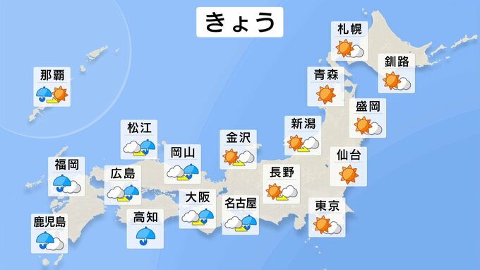 きょう26日(日)は関東甲信・北陸から北日本で晴れて、お出かけ日和になるでしょう。一方、西日本を中心に雨が降り、午後は激しい雨や雷雨となるおそれがあります。■東・北日本は空気の乾燥続く 火の取り扱い注…