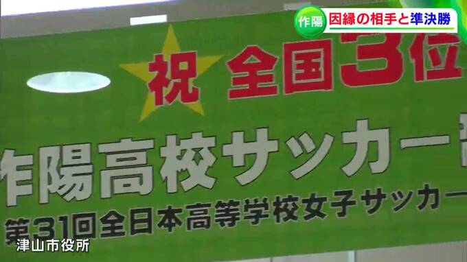 作陽イレブンの健闘を讃えようと、津山市役所には横断幕が掲げられました。4月には倉敷市に学校が移転する作陽、職員から聞かれたのは「感謝の思い」です。