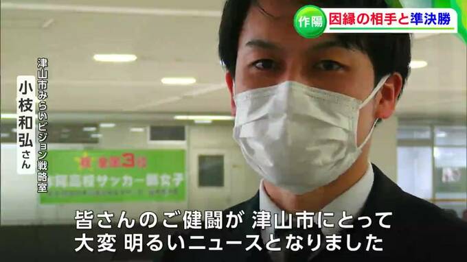 「皆さんのご健闘が、津山市にとって大変明るいニュースとなりました。来年こそは全国優勝目指して、頑張ってください」
