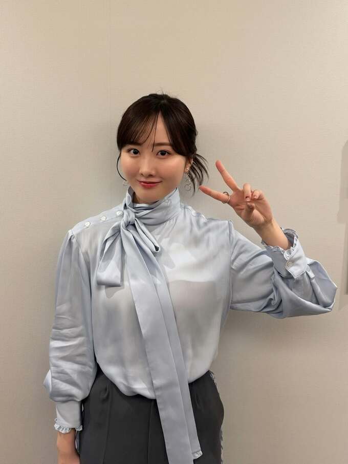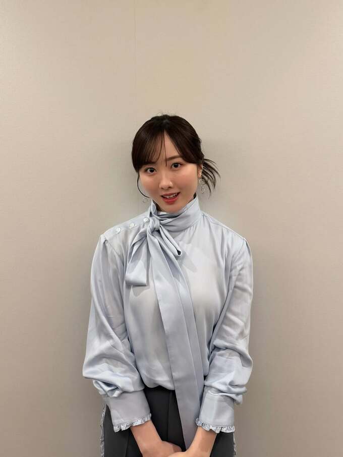 投稿された画像では、本田望結さんが、光沢のある淡い水色のブラウスに身を包み、親しみあふれる笑顔を届けています。