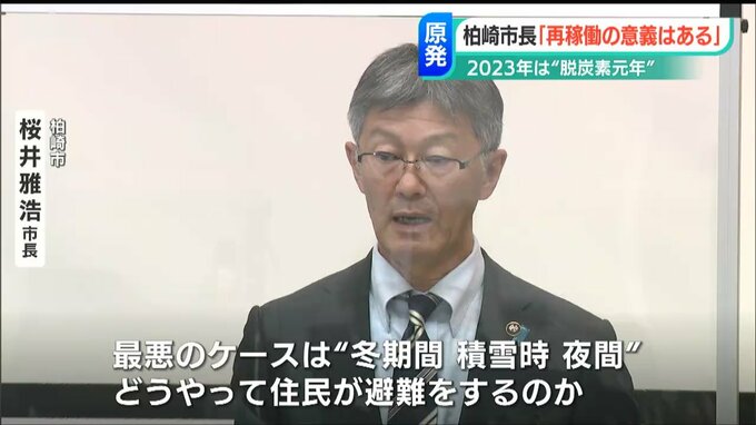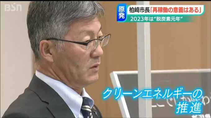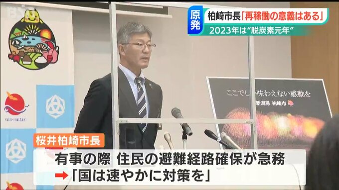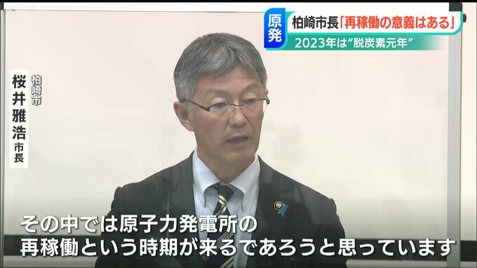 新潟県柏崎市の桜井雅浩市長は5日午前に開かれた今年最初の定例会見で、2023年を『脱炭素元年』と位置づけて水素事業や太陽光発電など含むクリーンなエネルギーを推し進める一年にすると力を込めるとともに、柏崎刈羽原発について「再稼働の意義はある」との立場を改めて示しました。