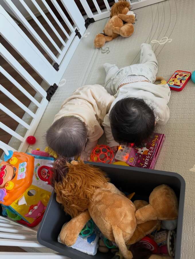 中川翔子さんは「ふたごたちが、ハイハイとおすわりが上手になってきて おいで!と手をたたくと2人とも、来るようになりました!」と、投稿。