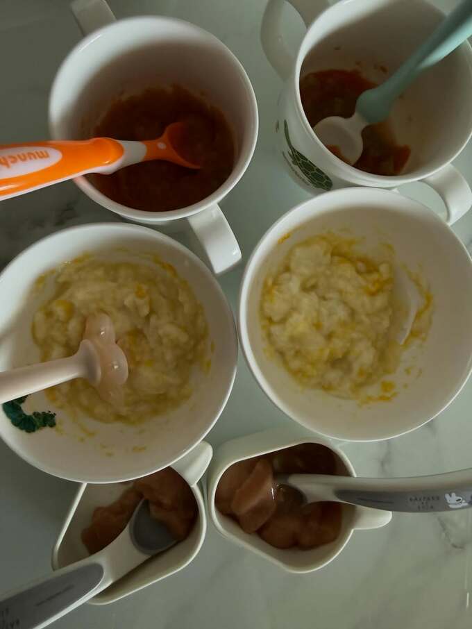 そして「離乳食完食!保育園でもふたりとも完食でほめられて嬉しい!コーン味パンがゆを作ったら大好評!」と、パンがゆの写真を添えて綴りました。