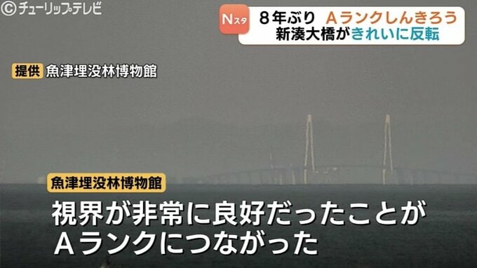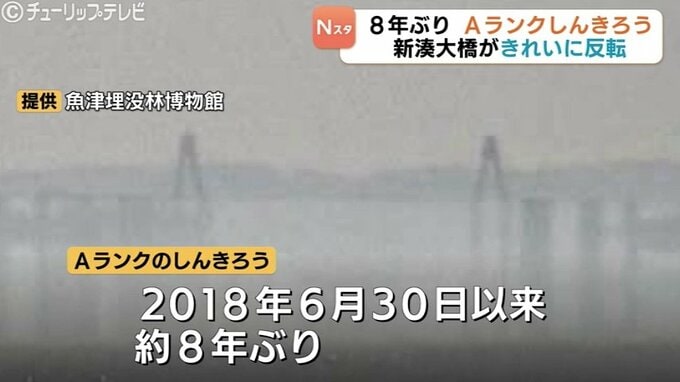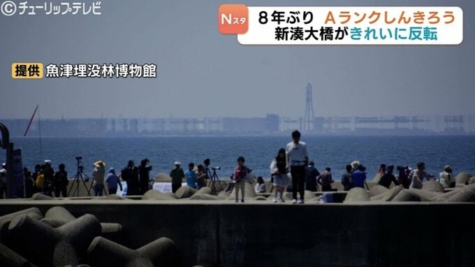富山県魚津市で26日、上位しんきろうが観測されました。昼すぎには風景の非常に明瞭な伸びや反転が確認できるようになり、Aランクと判定されました。Aランクはおよそ8年ぶりです。