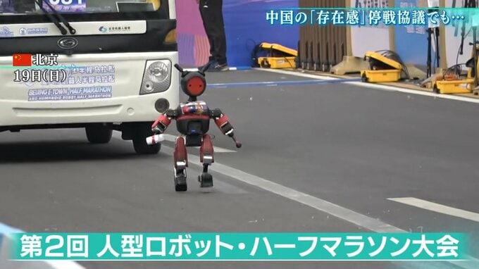 19日の北京で行われた、人型ロボットによるハーフマラソン大会。止まったり、転んだりというハプニングもありましたが2025年の5倍ものロボットが参加しました。