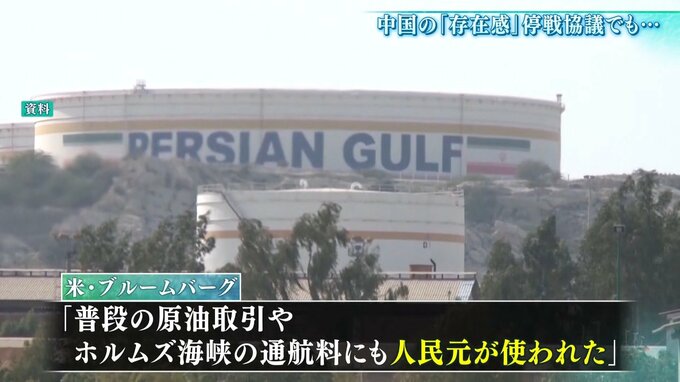 現在、イラン産原油輸出先の約9割は中国。ブルームバーグ通信によれば「普段の原油取引やホルムズ海峡でイラン側が課した通航料にも人民元が使われた」といいます。