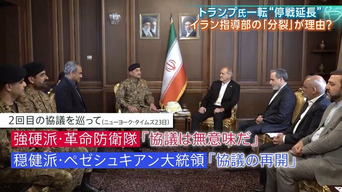 確かに、予定されていた2回目の協議を巡っては、強硬派の精鋭軍事組織・革命防衛隊が「協議は無意味だ」と主張。穏健派のペゼシュキアン大統領などが協議の再開を訴えたものの、軍部の主張が通ったと伝えられています。