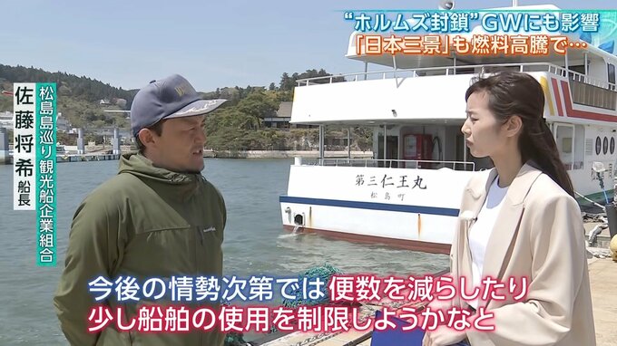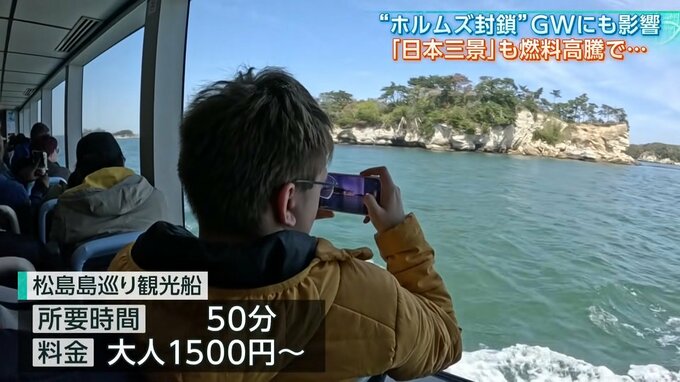 封鎖が続くホルムズ海峡。この影響が、身近な観光地にも影を落としています。いま観光地では何が起きているのか、日本三景の一つ「松島」を取材しました。