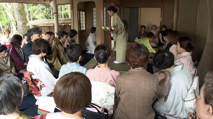 このほか園内では県内で活動する茶道の各流派による茶席も設けられ、訪れた人たちは春のひと時を楽しんでいました。