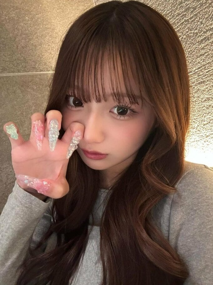 投稿された画像では、ダークブラウンのウェーブヘアが印象的な希空さんが、右手をカメラに向けてすっと掲げ、自慢のネイルを正面からアピールしています。