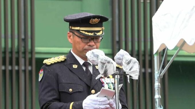 記念式典では、奄美駐屯地司令の堀内高志1等陸佐が、地域住民を前に奄美群島を守る決意を示しました。