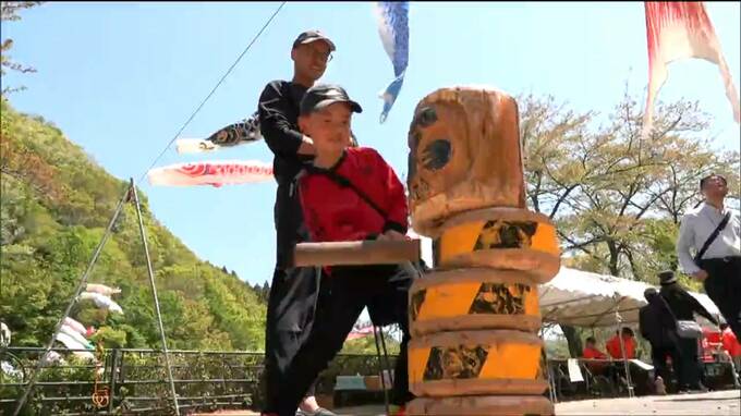 宮城県白石市の材木岩公園で開かれた春の検断屋敷まつり。地元の住民らが地域活性化を目的に開催しています。