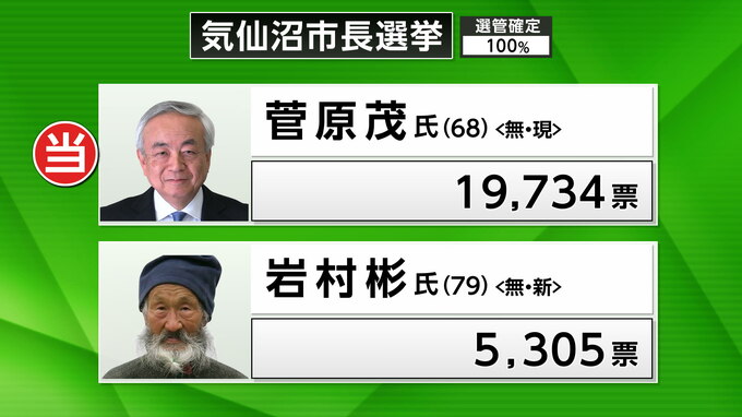 26日投票が行われた宮城県気仙沼市長選は即日開票の結果、現職の菅原氏が5回目の当選を果たしました。