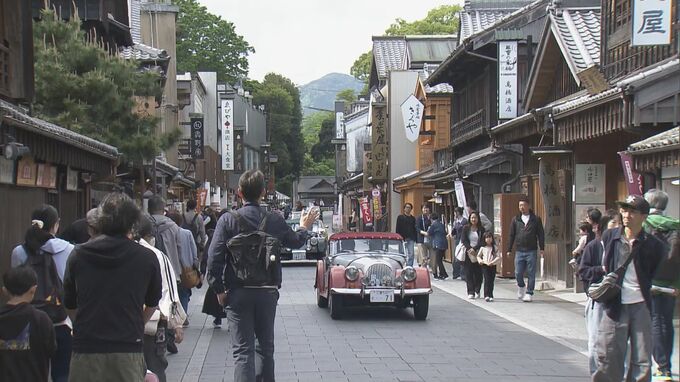 三重県伊勢市に全国からクラシックカーが集まり、風情ある町並みを駆け抜けました。