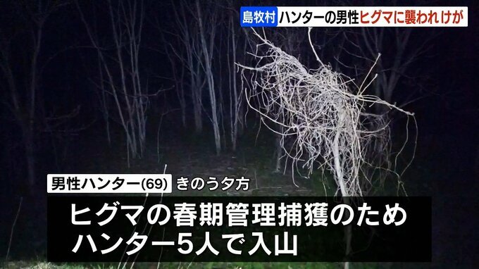 警察によりますと、ヒグマに襲われたのは猟友会に所属する69歳の男性ハンターで、ヒグマの春期管理捕獲のためハンター5人で島牧村泊の山に入っていました。