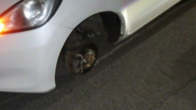 6日午後11時ごろ、北海道八雲町の道道42号を走行中の乗用車の左前輪が脱落する事故がありました。