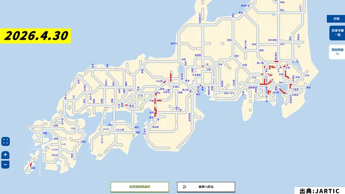 渋滞予測一覧 4月30日(木)