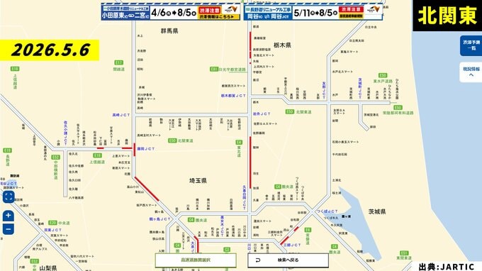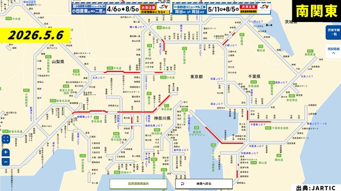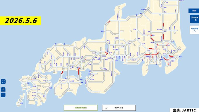 渋滞予測一覧 5月6日(水・休)