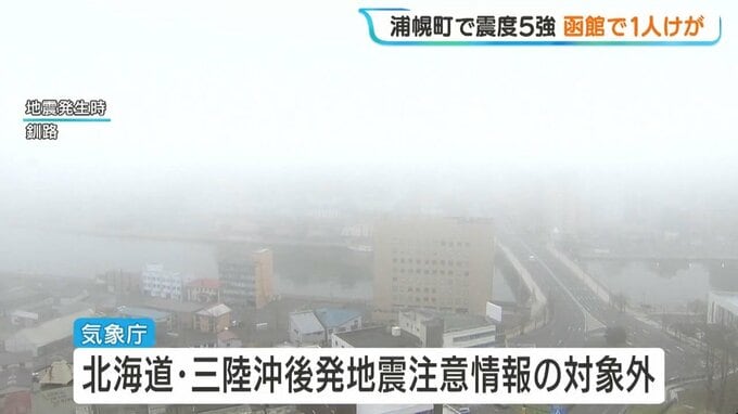 震度4を観測した函館市では、90代の女性が揺れで転倒し軽いけがをしました。