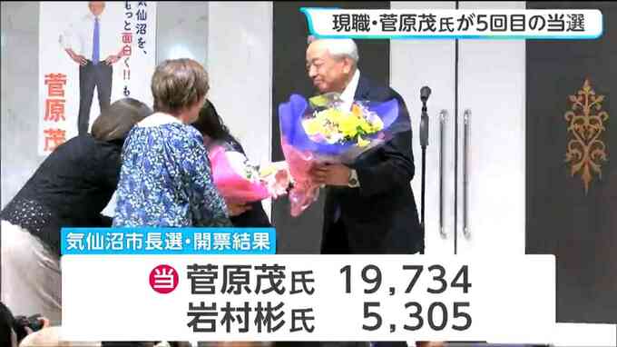 26日投票の宮城県気仙沼市長選挙は即日開票の結果、現職の菅原茂(すがわら・しげる)氏が5回目の当選を果たしました。