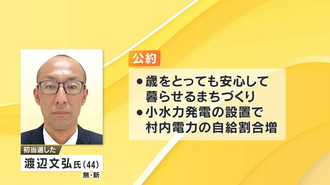 福島県昭和村の村長選挙は26日、投票が行われ、新人の渡辺文弘さんが初当選しました。