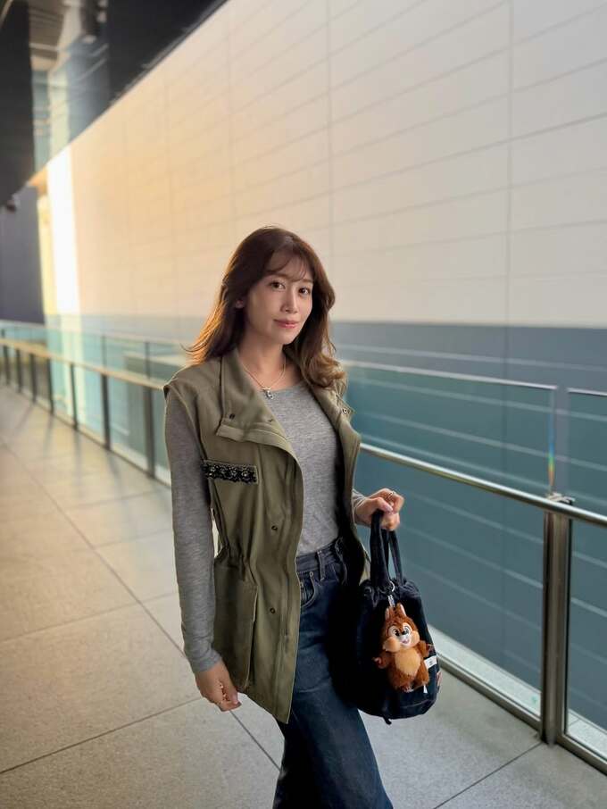 投稿された画像では、中川安奈さんが、ベージュの多機能ポケット付きベストにグレーの長袖を重ね、濃いインディゴブルーのジーンズを合わせた落ち着いた配色が、都会的でこなれた印象を与えています。