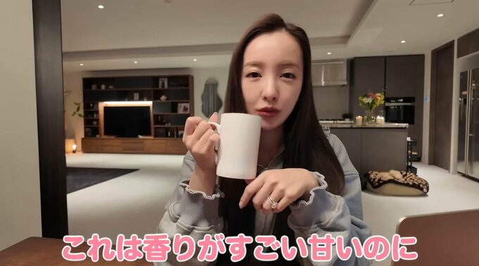 娘を寝かしつけ、部屋を片付けたあとは板野さんの「1人時間」です。夜の作業中にお腹がすくため、最近はデザートの代わりにお茶を飲むようにしているといい、「香りはめちゃくちゃピーチで、飲むとすごい普通のティーで飲みやすくて、香りが良くて甘くないっていうところが私に刺さってます」とコメント。この日はティーフレックスの「スリープナイトピーチルイボスティー(ぐっすりルイボスティー)」を紹介しました。