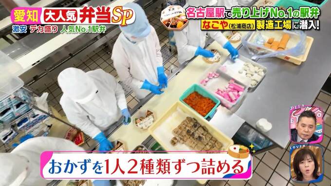 松浦社長によると、実はここにも愛される秘密が。駅弁は買ってから持ち運びすることが多いので、すき間があると揺れて中身がグチャグチャになってしまいます。揺れで中身が崩れないよう、ぎっしり盛り付けるのがポイントとのこと。