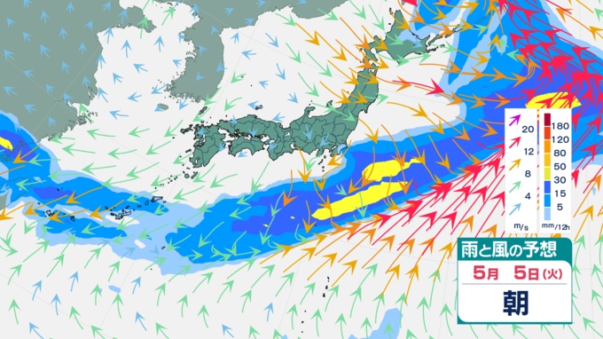 【大雨情報】ゴールデンウィーク期間中に大雨の日が…? 4月30日~5月1日頃は北日本と東日本で荒れた天気 西日本や沖縄・奄美では警報級の大雨の恐れも 雨・風シミュレーションで見る最新予想は? 青森テレビ 2026年4月27日(月) 14:45 国内 【5月5日】雨・風の予想シミュレーション 【雨・風の予想シミュレーションを見る(3時間毎)】 (4月27日、28日、29日、30日、5月1日、2日) 【この記事を最初から読む】