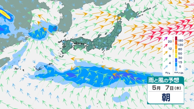 【大雨情報】ゴールデンウィーク期間中に大雨の日が…? 4月30日~5月1日頃は北日本と東日本で荒れた天気 西日本や沖縄・奄美では警報級の大雨の恐れも 雨・風シミュレーションで見る最新予想は? 青森テレビ 2026年4月27日(月) 14:45 国内 【5月7日】雨・風の予想シミュレーション 【雨・風の予想シミュレーションを見る(3時間毎)】 (4月27日、28日、29日、30日、5月1日、2日) 【この記事を最初から読む】 ※「NEWS DIG」のアプリやサイト以外でご覧の方は、関連リンクから画像をご確認いただけます。