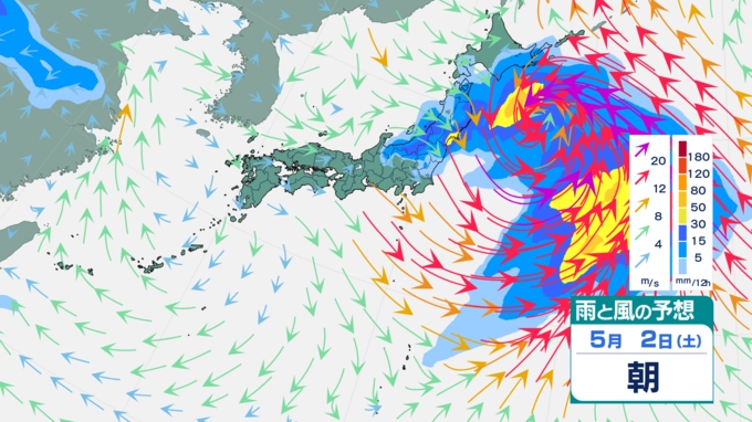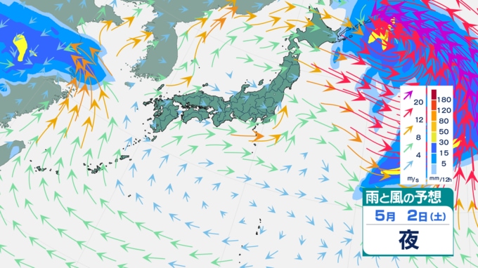 【大雨情報】ゴールデンウィーク期間中に大雨の日が…? 4月30日~5月1日頃は北日本と東日本で荒れた天気 西日本や沖縄・奄美では警報級の大雨の恐れも 雨・風シミュレーションで見る最新予想は? 青森テレビ 2026年4月27日(月) 14:45 国内 【5月2日】雨・風の予想シミュレーション 【雨・風の予想シミュレーションを見る(3時間毎)】 (4月27日、28日、29日、30日、5月1日、2日) 【この記事を最初から読む】