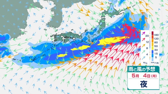 【大雨情報】ゴールデンウィーク期間中に大雨の日が…? 4月30日~5月1日頃は北日本と東日本で荒れた天気 西日本や沖縄・奄美では警報級の大雨の恐れも 雨・風シミュレーションで見る最新予想は? 青森テレビ 2026年4月27日(月) 14:45 国内 【5月4日】雨・風の予想シミュレーション 【雨・風の予想シミュレーションを見る(3時間毎)】 (4月27日、28日、29日、30日、5月1日、2日) 【この記事を最初から読む】