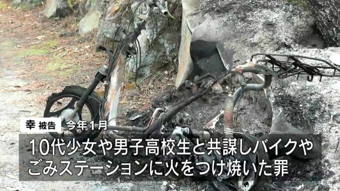 起訴状などによりますと幸被告は今年1月、住所不定の10代の少女や男子高校生と共謀し、鹿児島市桜島で他人の原付バイクやごみステーションに火をつけ、焼いたとされています。