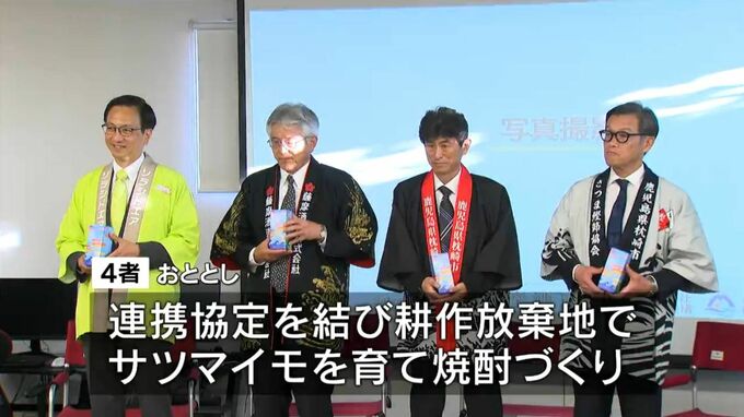 枕崎市では農家の担い手が減り使われない畑が増えるなど課題となっています。そこで4者はおととし連携協定を結び、使われていない畑で育てたサツマイモを使って焼酎をつくりました。