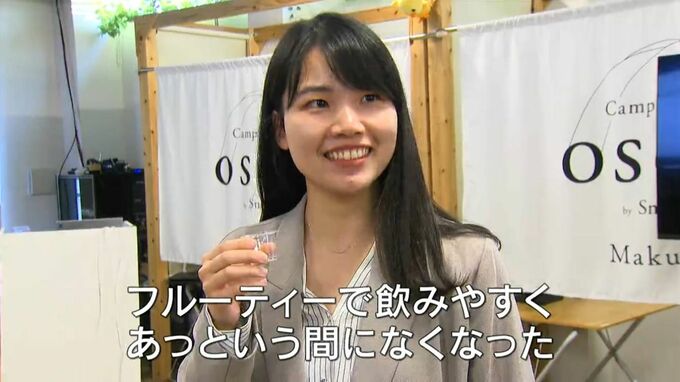 (レポーター)「こちらが開発された焼酎、香りはアーモンドのような甘い香りです」