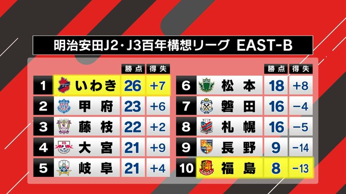 次の試合は29日で、いわきはホームで岐阜と対戦します。