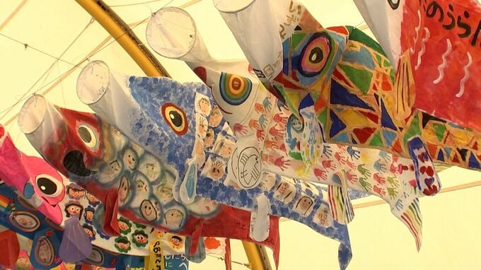 また岡山県内の幼稚園児らが描いた『ホワイト鯉のぼり』も掲げられました。