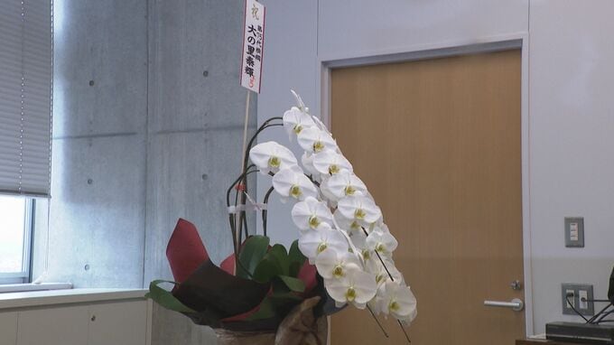 机の上には地元出身の横綱・大の里から届いた胡蝶蘭も