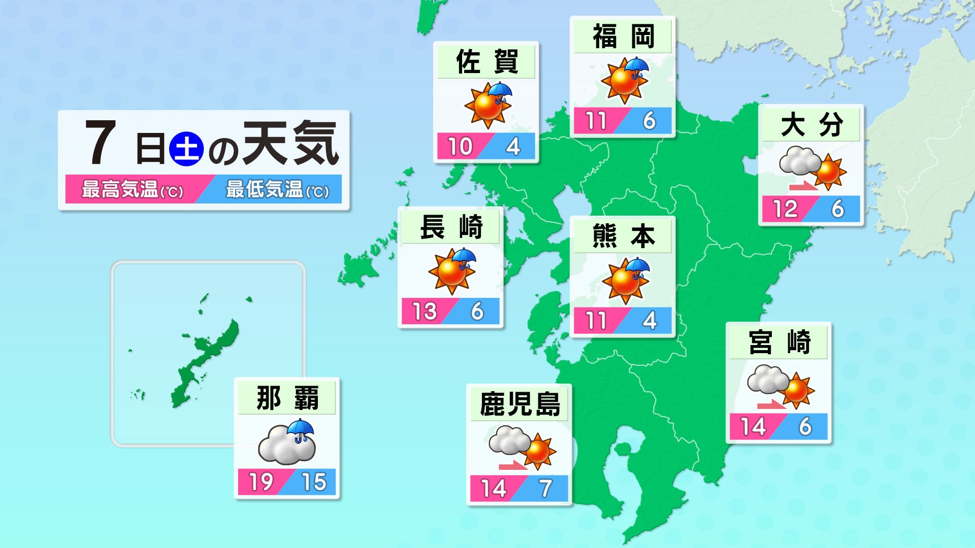 6日(金)夜、前線を伴った低気圧が九州南部付近を通過します。夕方ごろから雨が降り出し、夜は雨でしょう。6日(金)朝は、雨が降っていなくてもカサを持って出かけましょう。ここ10日間ほど雨が降っておらず、空気は乾いていたため、あすには乾燥注意報も解除されるでしょう。